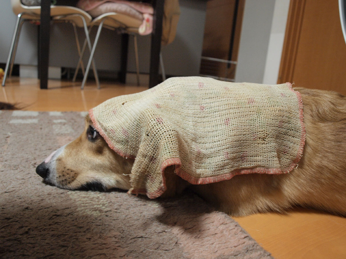 反省のため、布巾をかぶせられています (o^^o)