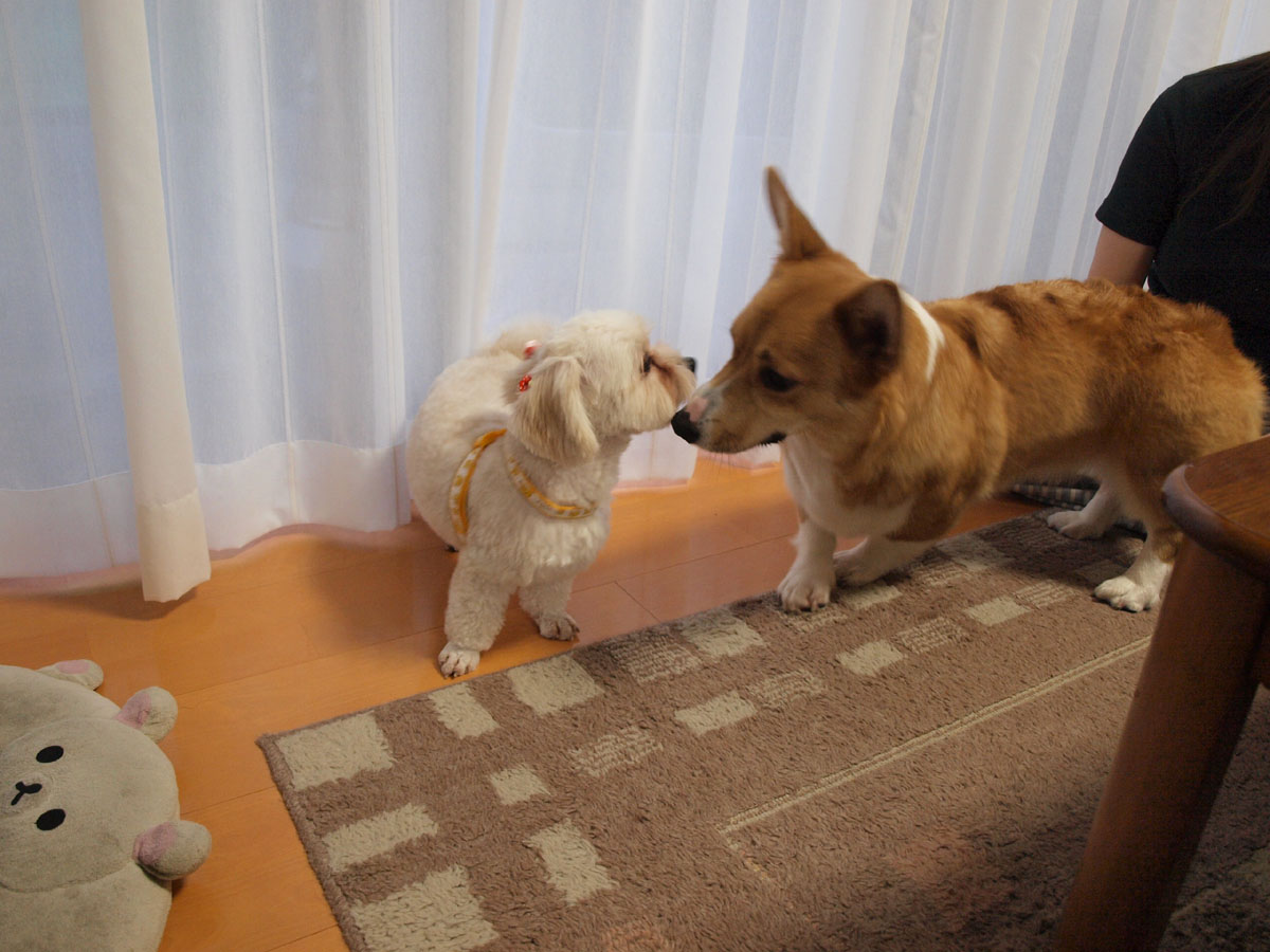 超小型犬と一緒だと、中型犬クラスに見えちゃいますね。