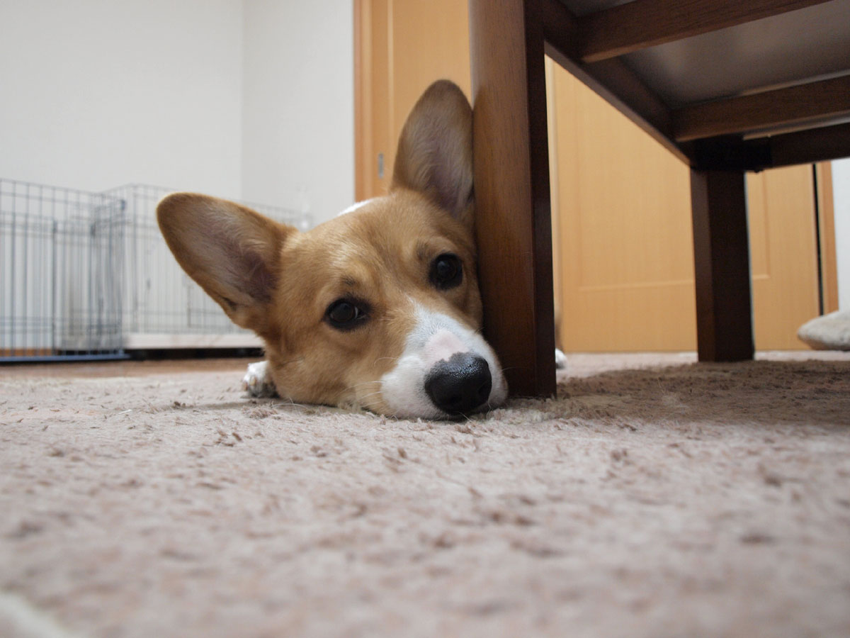 イスの下に避難中です